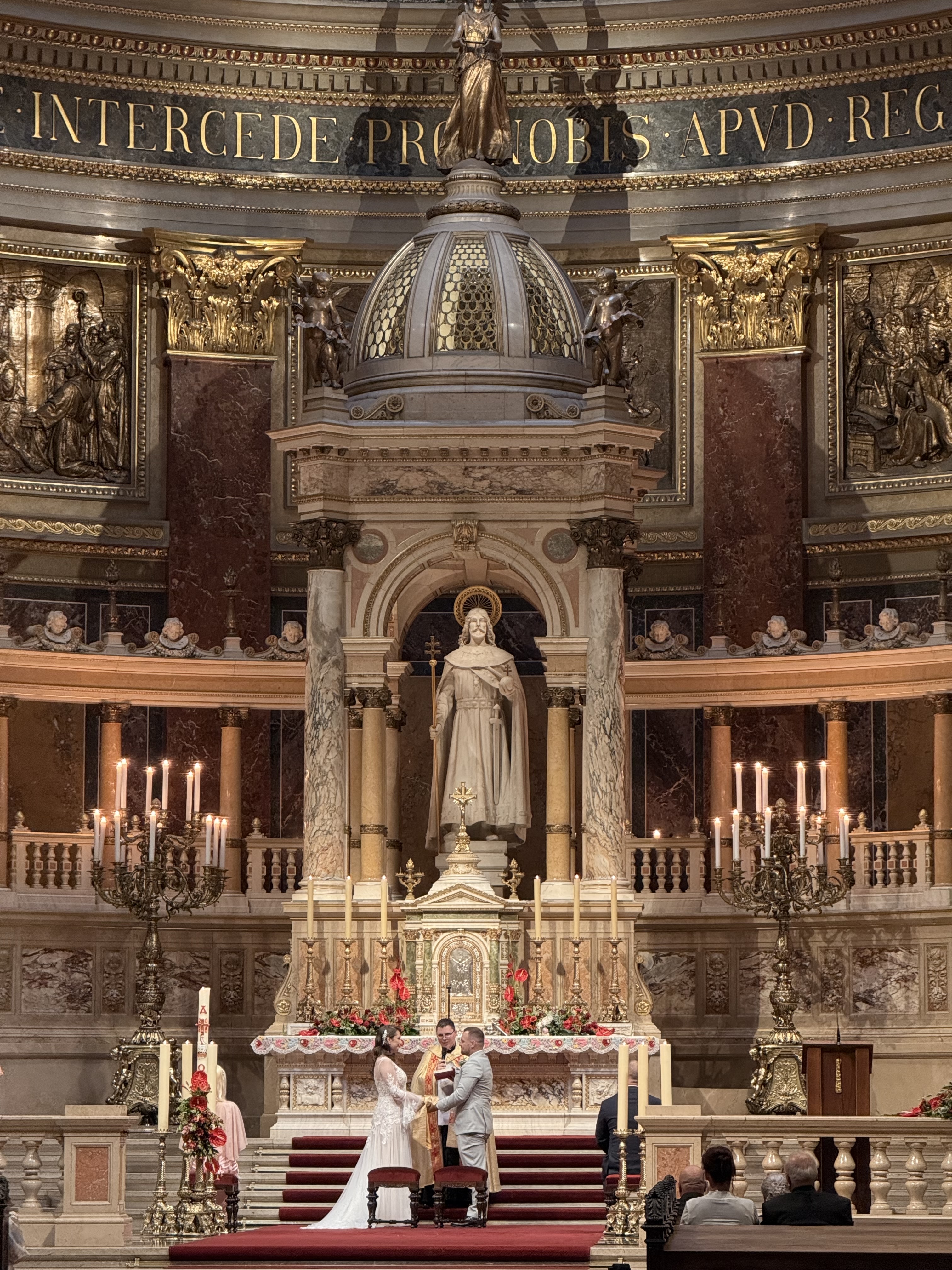 神父在證婚的時候,我甚至還默默的掉淚了!(我根本聽不懂也不認識這對新人欸!)就是有一種⋯⋯能在這裡接受上帝的見證祝福真的是太好了的那種感動。之前聽寧夏璐有一集在討論結婚的意義,黃醫師說他認為結婚的承諾是在跟上帝立約,你承諾的對象應該是上帝;今天就很有這樣的感覺。新郎新娘都是面對著上帝,在神父的見證下向上帝承諾要與身邊的這個人共度一生。雖然看過很多的婚禮,但第一次在這麼美的教堂裡、替一對不認識的外國人見證這美好的一刻,我真的覺得好快樂好榮幸喔❤️
