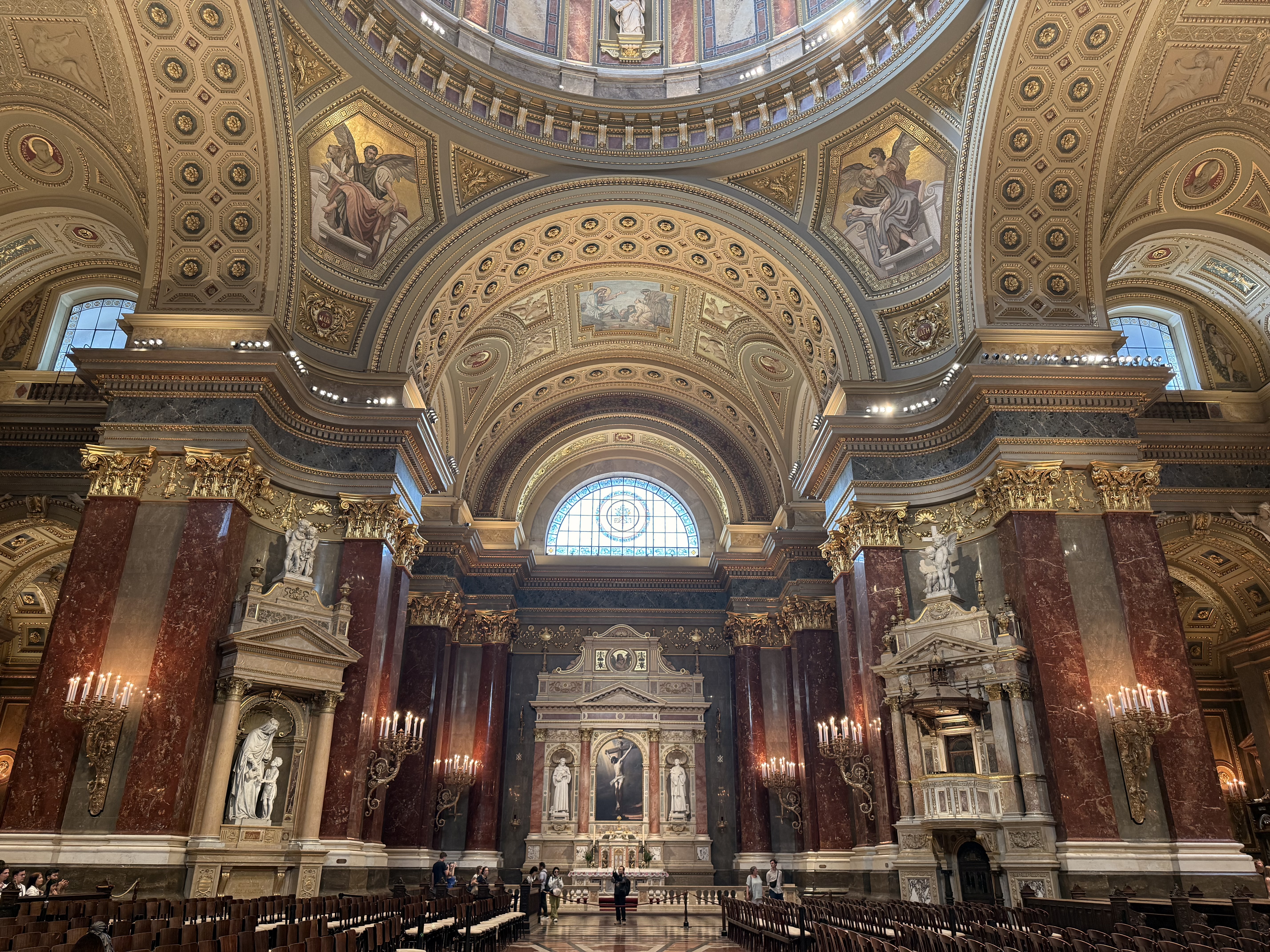 離開市集後發現我離「聖伊什特萬聖殿」不遠,上網看了一下評價好像很不錯!(而且實在是很想去個室內吹冷氣😆(教堂冷氣應該很強吧)(一直被氣溫控制的女子)(大家夏天來歐洲絕對要做好準備,歐洲的熱真的是沒在開玩笑)