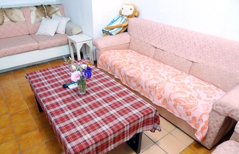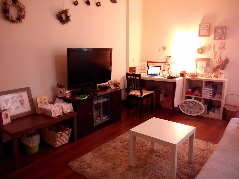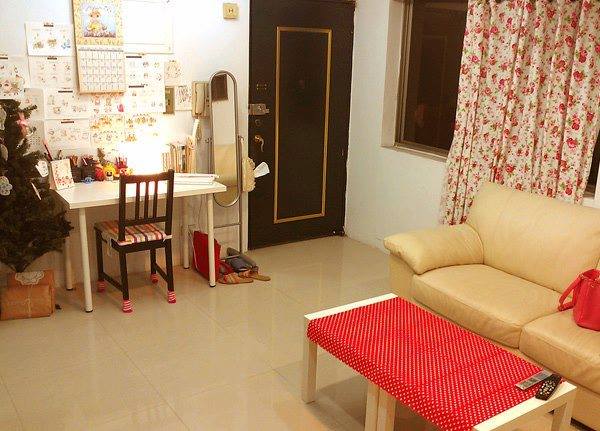 這是我們的客廳,一樣被我佔據了(笑)。當時的國中同學室友是個男生,回家就是看電視洗澡睡覺,家裡弄成怎麼樣他根本不care!我就很理直氣壯地完全按照自己的想法來佈置(可以這樣嗎XD),還邊弄邊想說,這麼賢慧怎麼不愛上我呢?啊哈哈哈哈