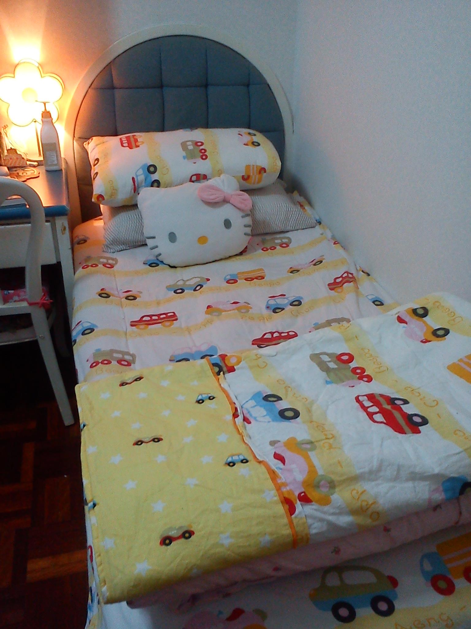 當時的床單、枕頭,大多數都是從高雄家裡帶出來的,我記得以前很愛去IKEA買兒童床單,覺得花色可愛又便宜!導致整個房間都很像小孩房(哈哈)