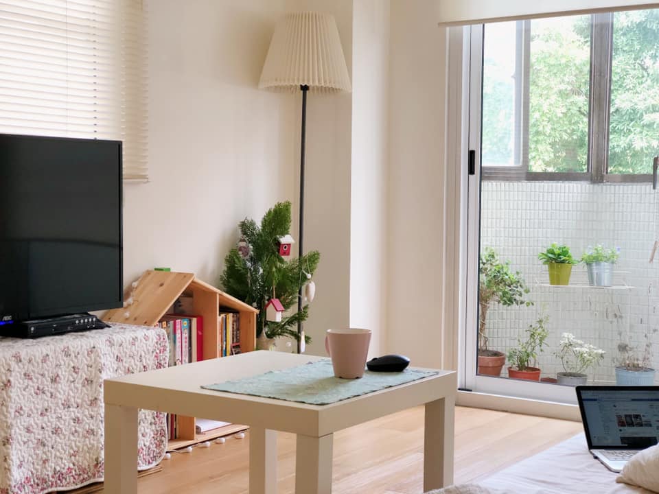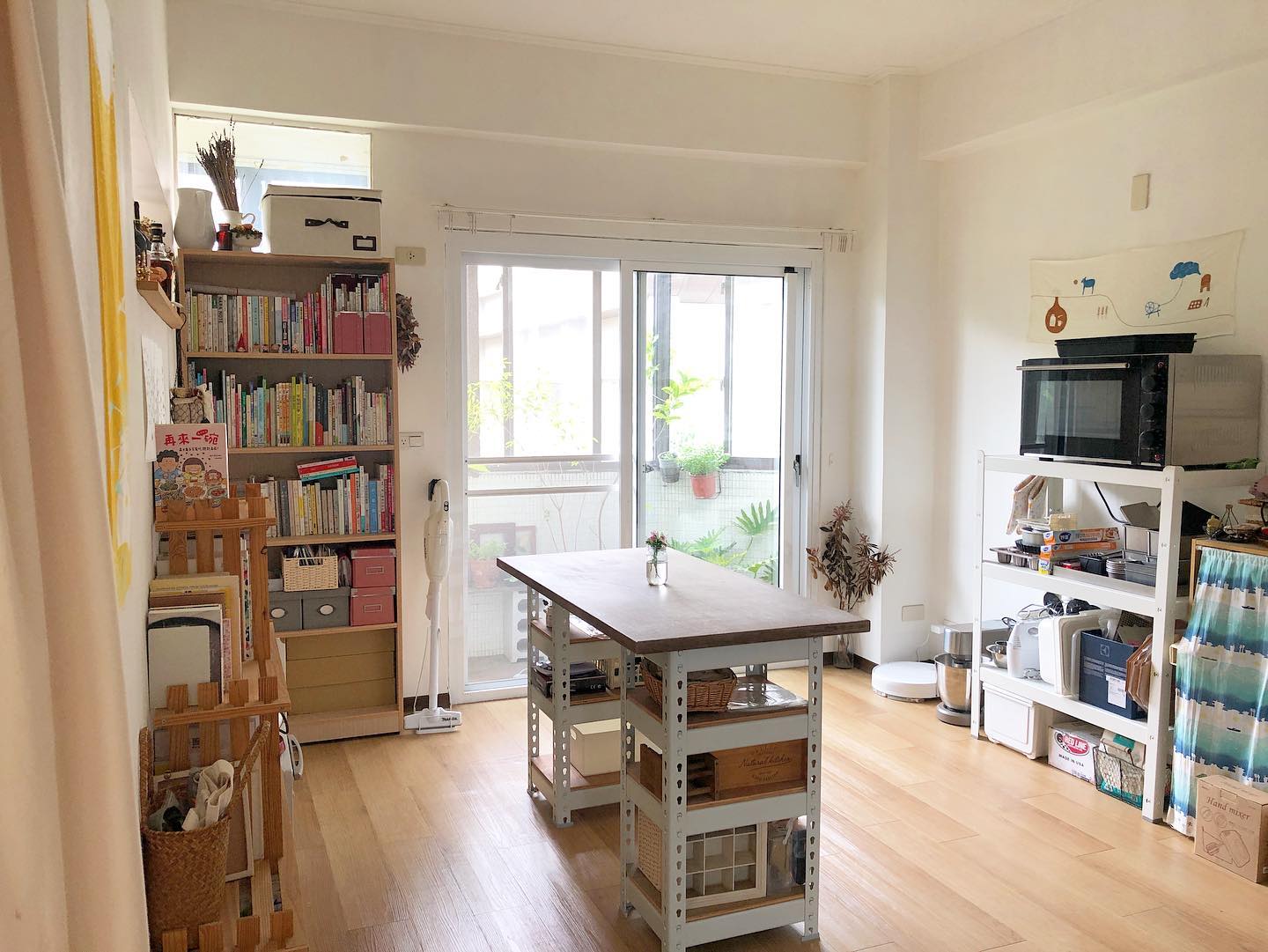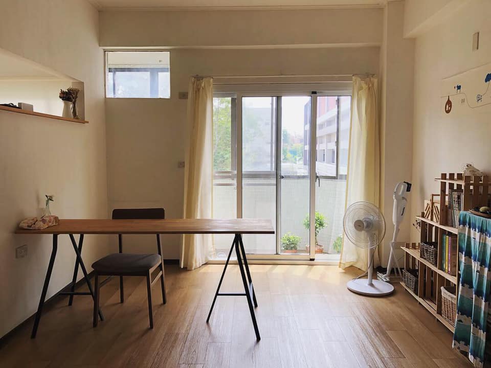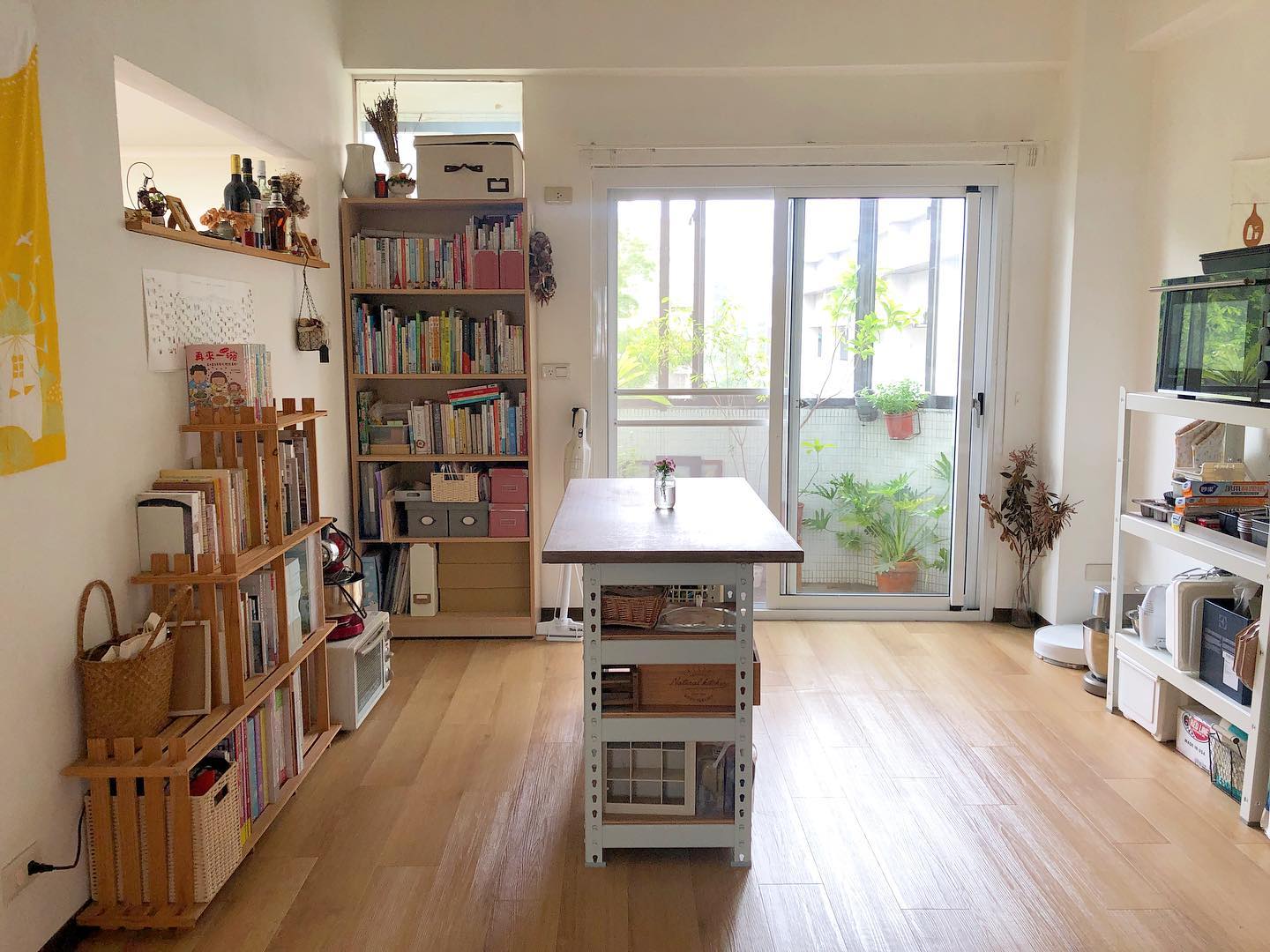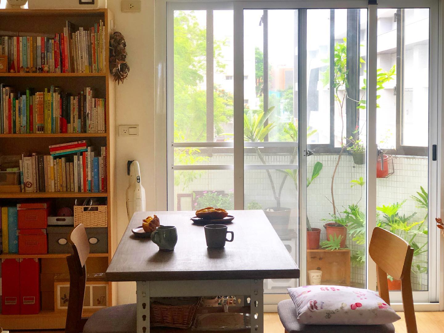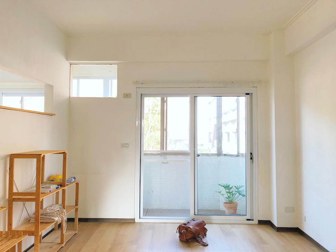 第一眼見到這個房子我就很喜歡,大大的落地窗、灑進滿滿的自然光。房東留下的盆栽、木櫃、冰箱、自己做的木桌、冰箱、冷氣、洗衣機⋯等,都願意留下給我們使用,我幾乎是沒有懸念的就決定要租這裡,即使他的租金相較其他房子稍微貴了一些。
