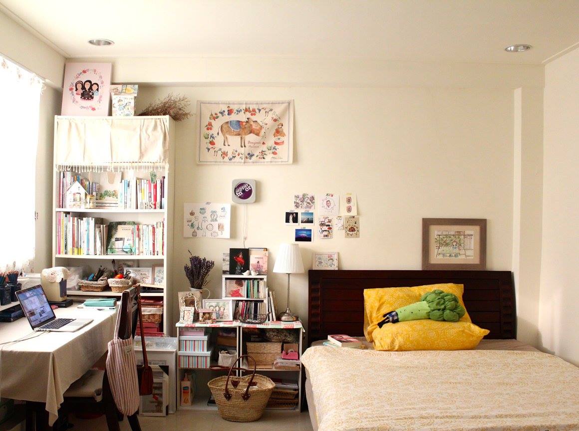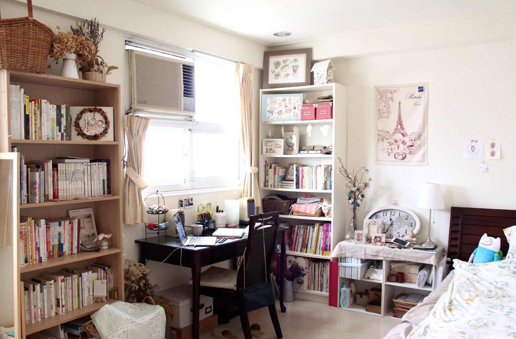 後來發現,其實就算是採光不錯的房子,也還是要留意窗戶外的環境(尤其如果你是像我一樣喜歡開窗有自然風的人),因為像這個房子因為只有單邊有窗,所以其實沒有空氣對流,對我來說並不算是一個理想的房子。我只能在我能做到的範圍裡(佈置、收納環境)盡量做到整潔舒適。(東西還是很多,哈哈)
