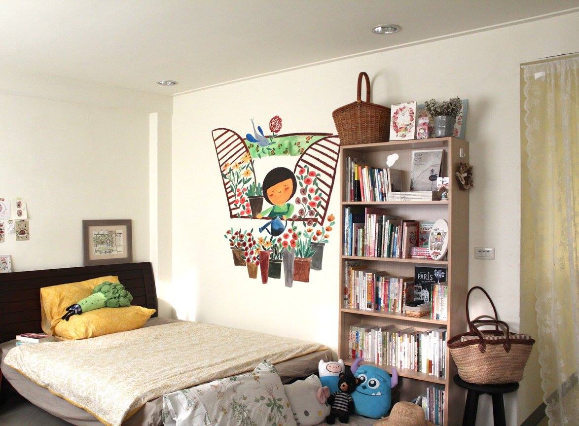 其實兩間房間的格局、設備都是一樣的,在當初的設定是希望一間是有朝氣、活潑的空間;另一間就是相對沈穩、溫柔的空間。還特地請新竹的朋友來我們家玩的時候,半威脅半利誘(?)的請他們幫忙油漆(笑)