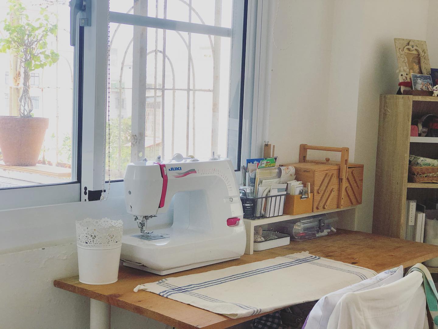 (工作室的兩張桌子,一張拿來畫畫工作、一張拿來縫紉aka大叔的桌子)