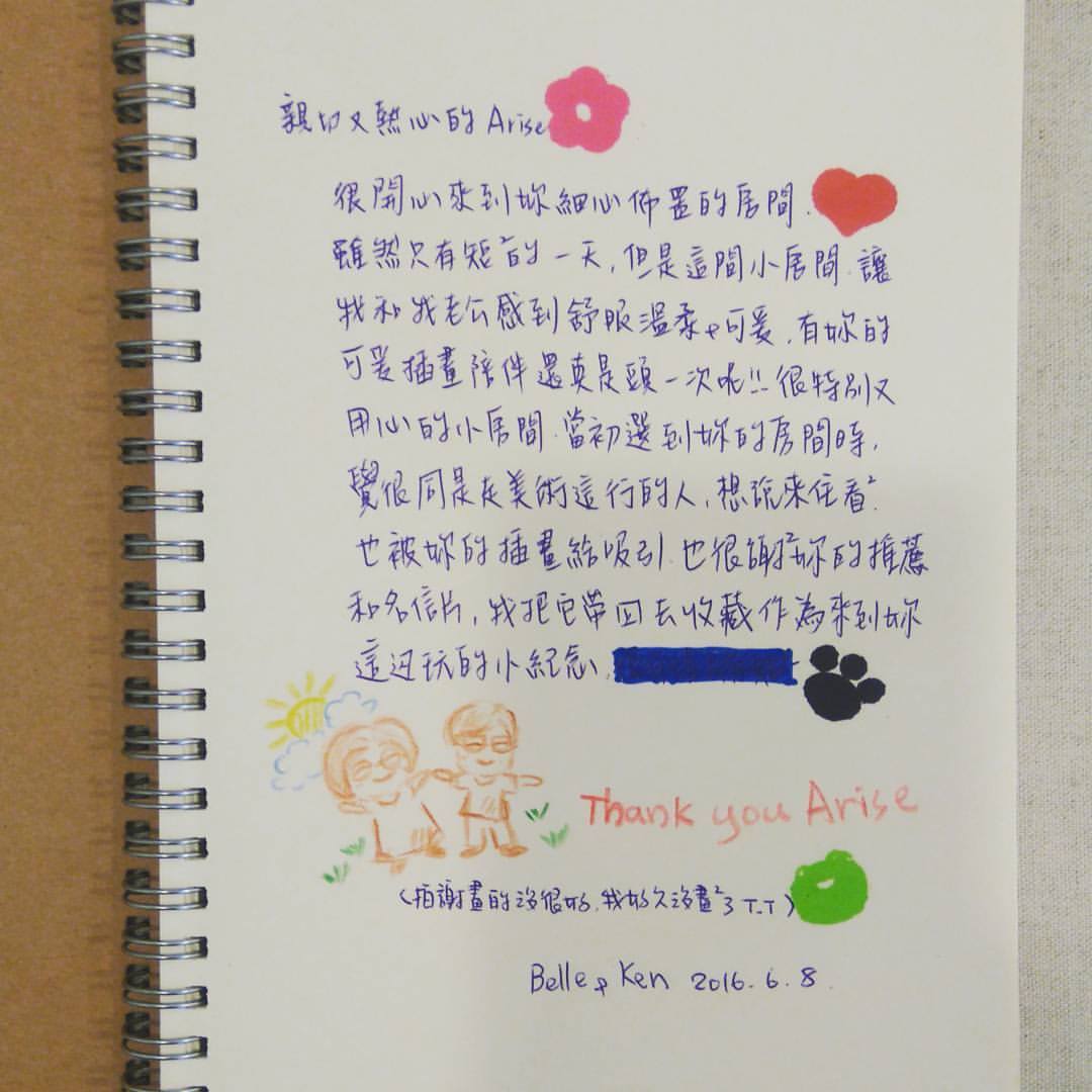 很幸運的,小房間在上架 air b&b 不久就有客人,也獲得了一些不錯的評價,我在房間裡放了一本筆記本,邀請來入住的客人可以留言、建議給我,現在偶爾翻開來,都會覺得很感恩,這樣一間樸實無華的小房間,竟然還能獲得這麼多人的喜歡,真是何德何能呀(笑)