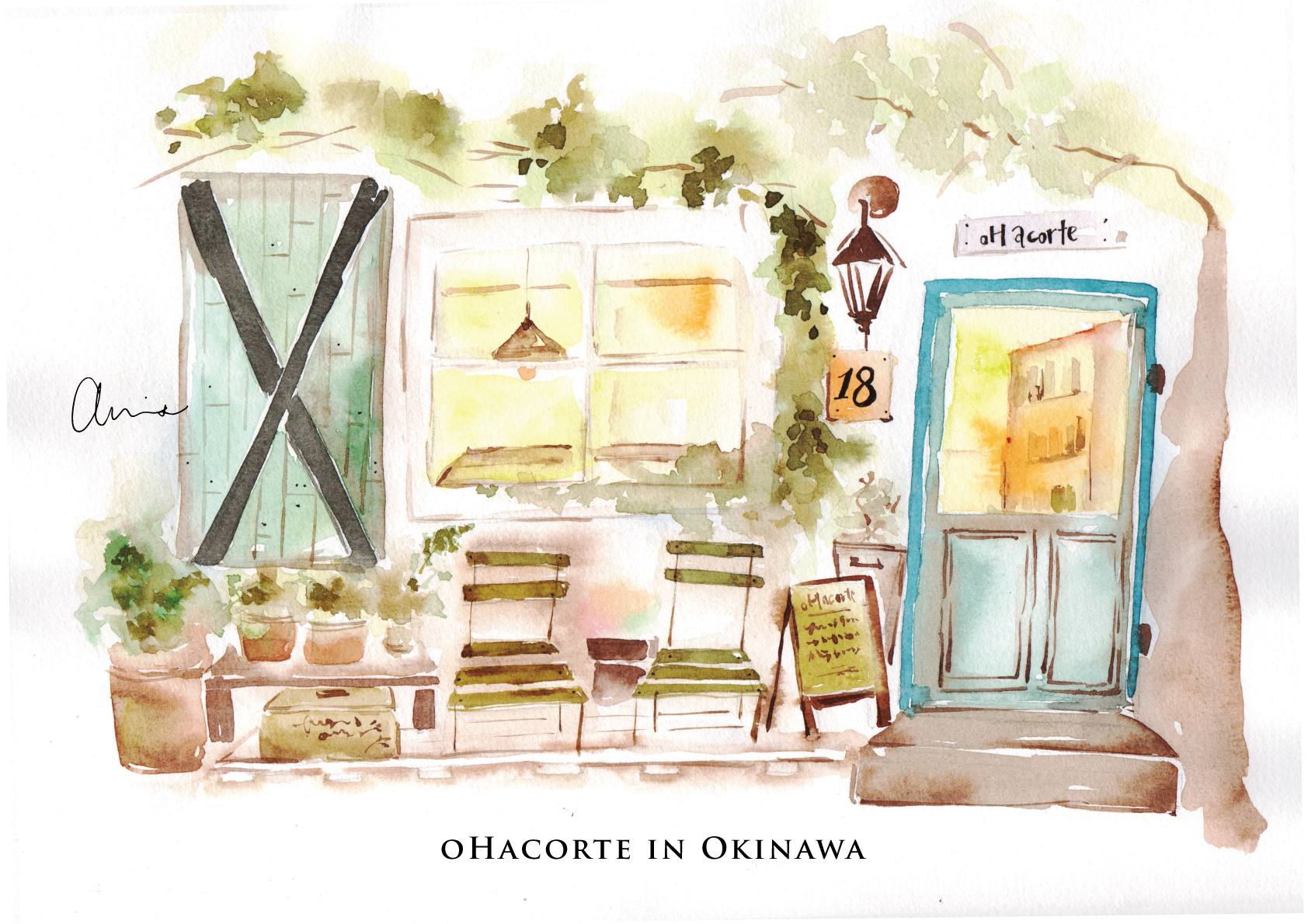 自從2018的夏天,在沖繩吃下第一口ohacorte水果塔,就心心念念那個酸甜滋味,還有那間座落在港川區的小店面。向陽的盆栽、斑駁的木窗、角落旁因為海風而鏽蝕的鐵椅...我是這樣心跳加速的接近他,再用念念不忘的心情畫下他...