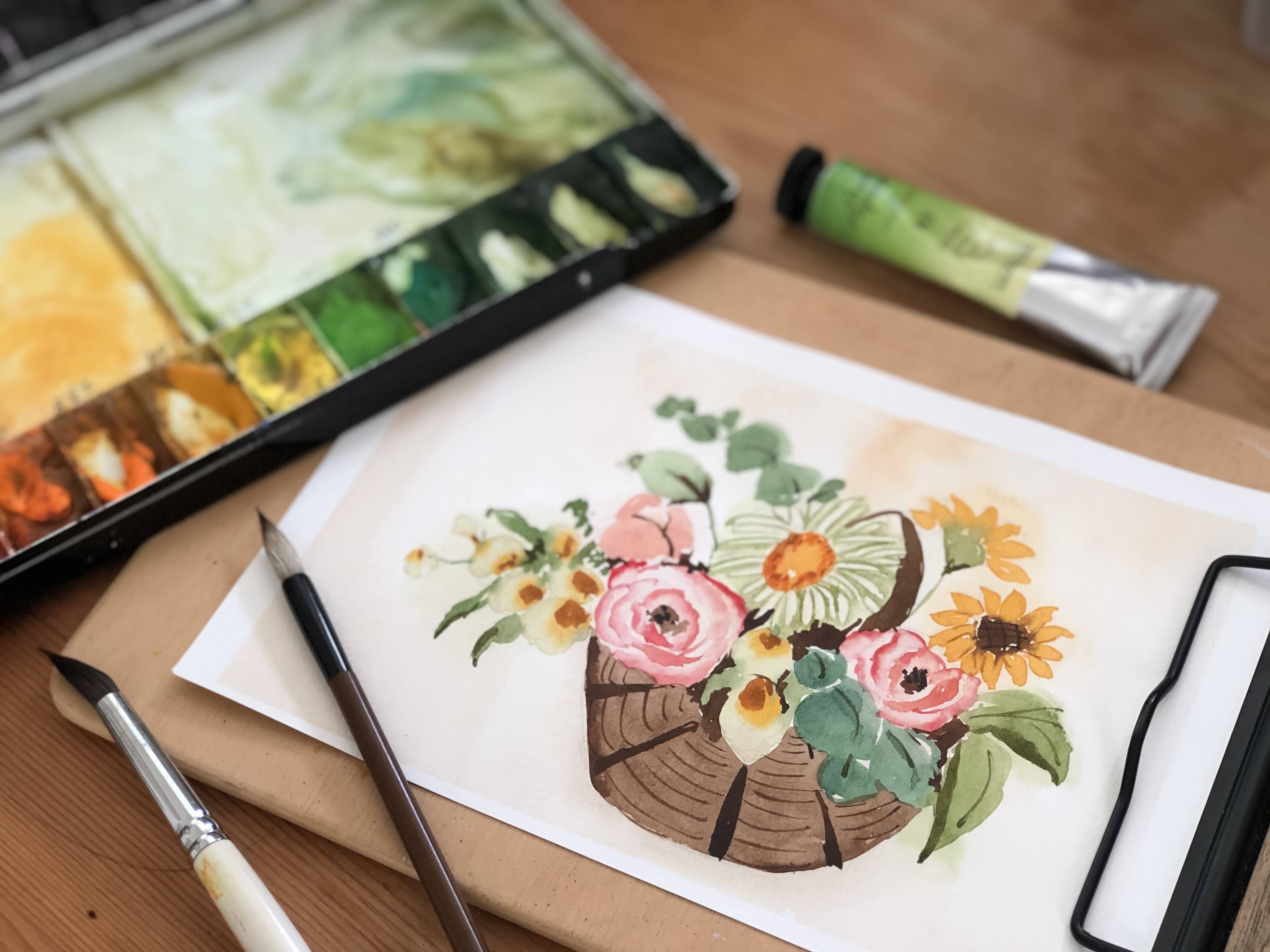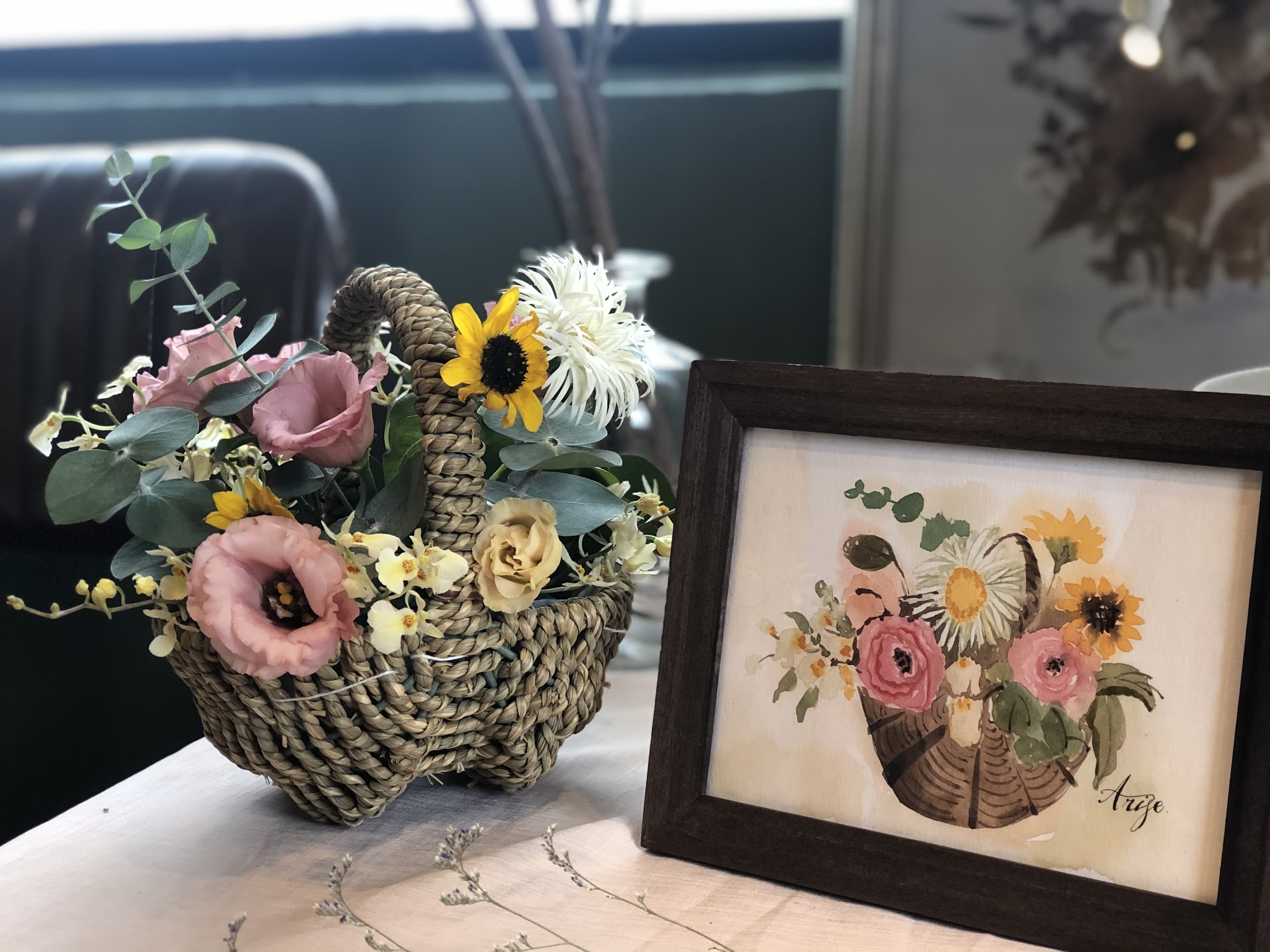 與 Flor Acces • 花是花飾 聯名合作的「花店裡的水彩課」系列課程來到第三個月啦!這次我們將首次使用鮮花來做創作,將迷你向日葵、太陽花都收進這個夏天裡,帶你一起插一盆夏日的花朵、再用畫筆紀錄花籃身影。1+1的超值課程不要錯過唷!