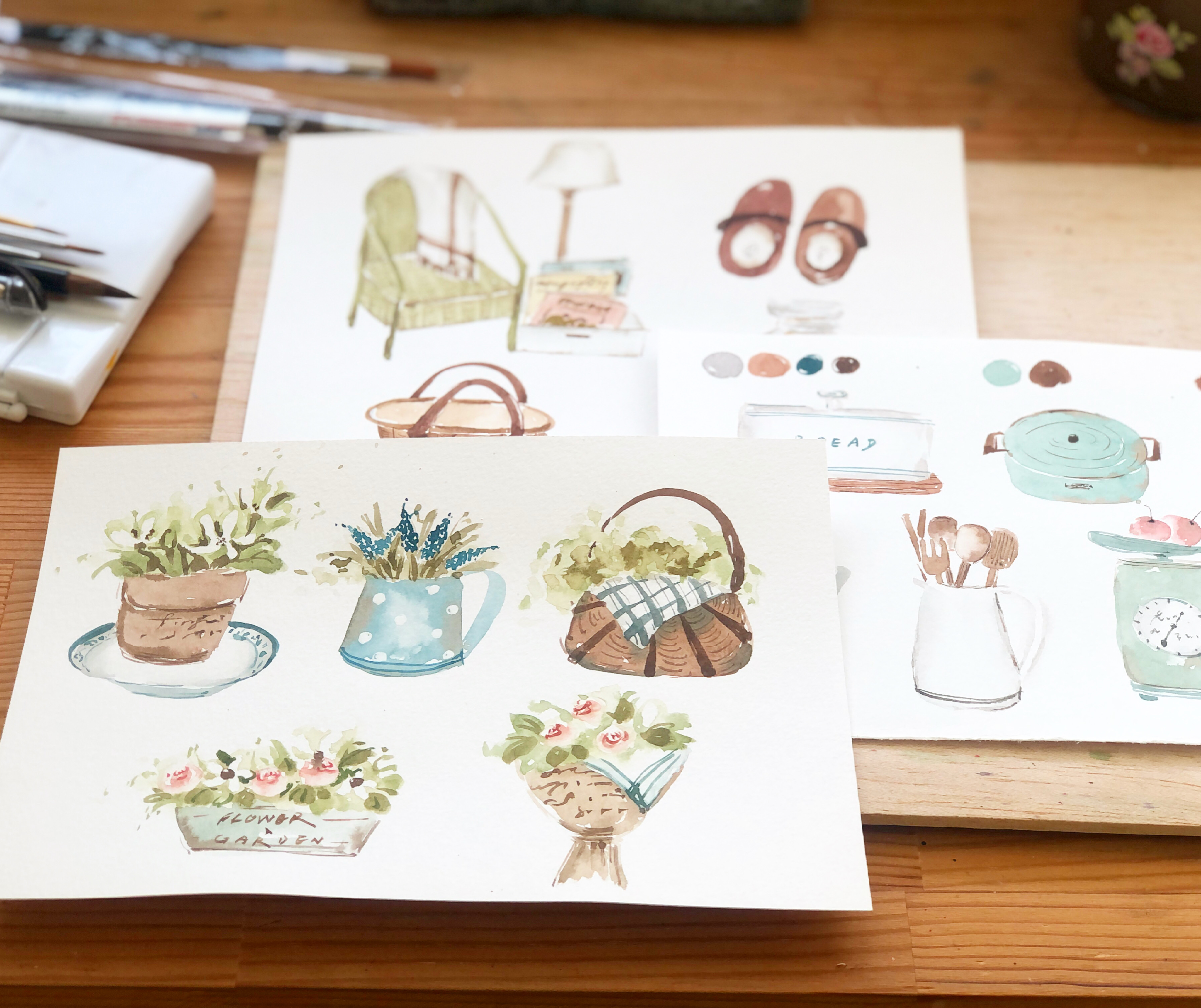 我喜歡在生活裡,創造一點儀式感,讓每件小事看起來都不一樣。 睡前找個舒適的椅子看雜誌、冬天來臨時穿上包頭棉製的室內拖鞋、在睡衣上噴上香奈兒香水讓喜歡的味道陪我入眠...把每天陪你在身邊的物品都以珍視的心情記錄下來,或者那些還寄放在店面的,都用水彩「買」下來吧! |