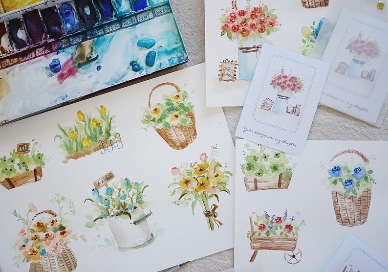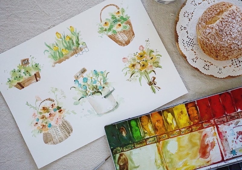 使用寫意水彩風格,創作一個個迷人的春天花禮。