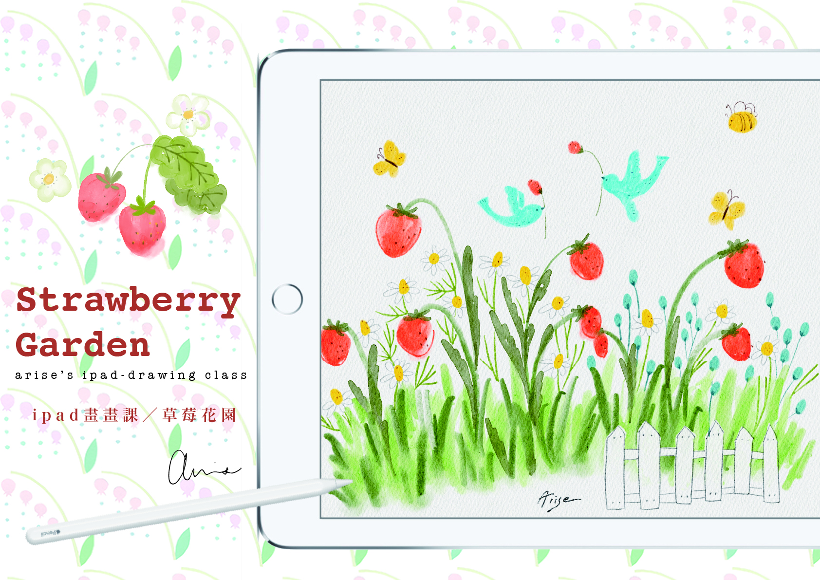 課程內容/ 面對面的手把手的帶你從無到有使用iPad來繪製一幅可愛的草莓花園作品,有問題隨時詢問替你解答。 維持一貫 Ariselin Design 的清新療癒風格,讓你學習技能之餘也提升美感培養。
