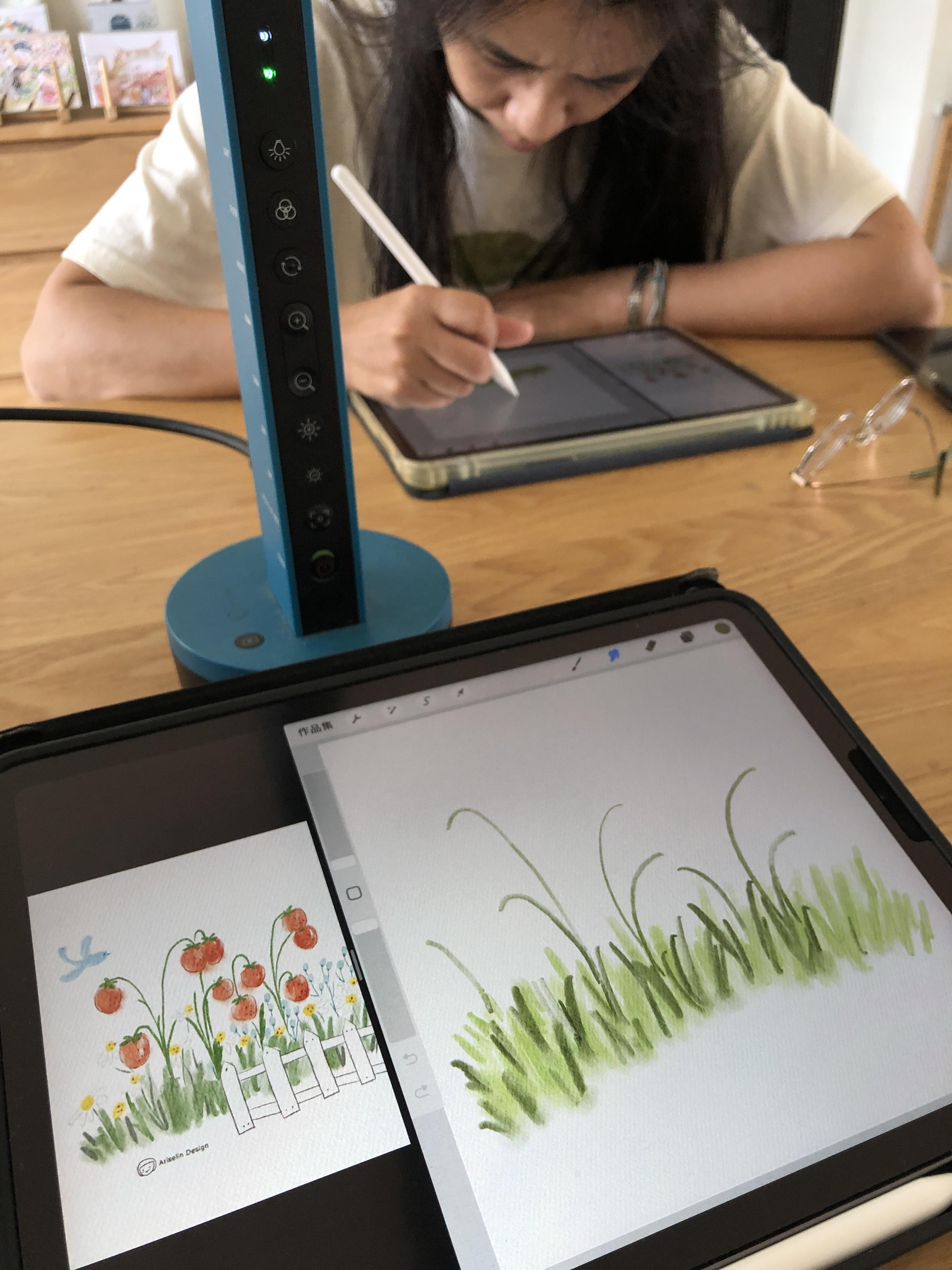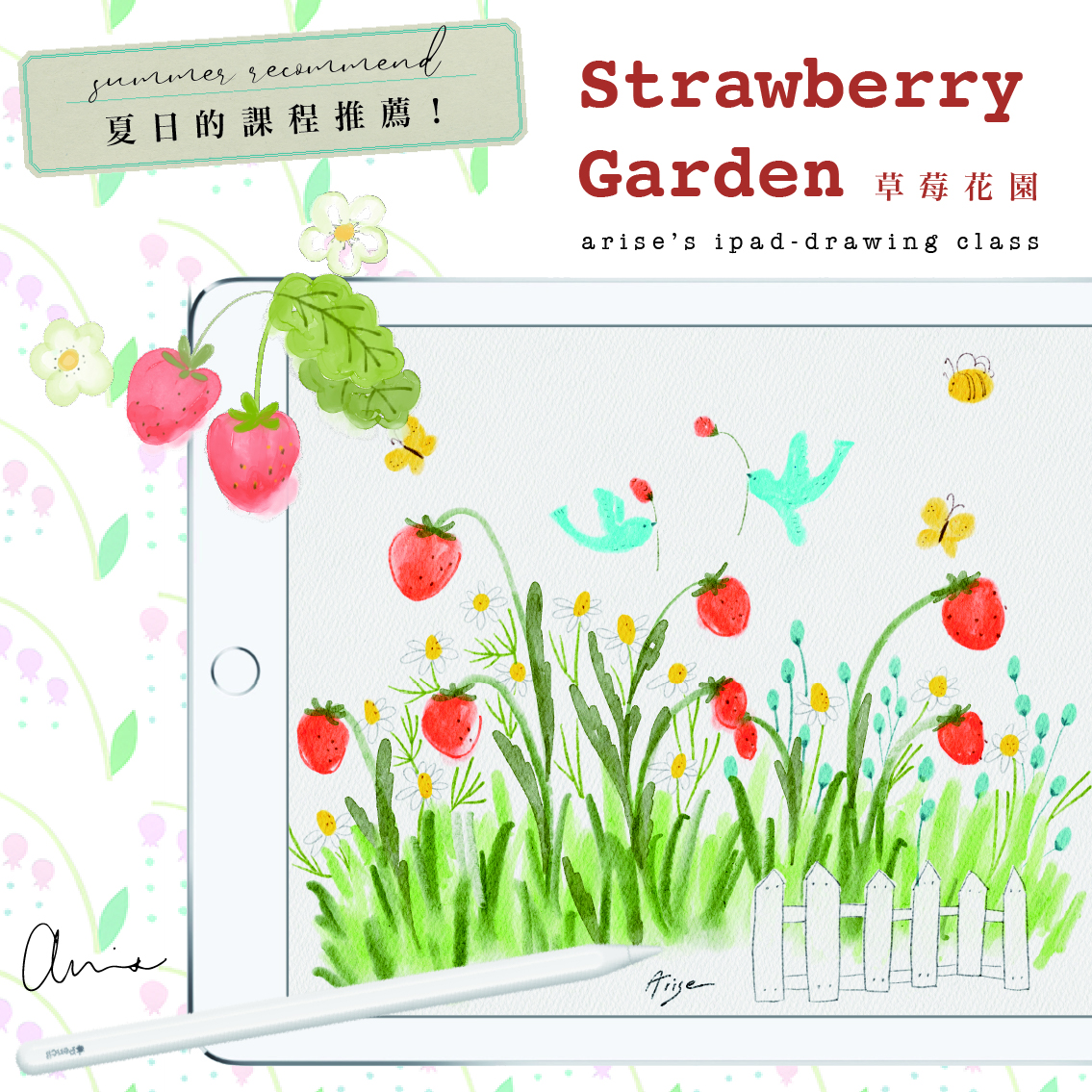 課程內容/ 面對面的手把手的帶你從無到有使用iPad來繪製一幅可愛的草莓花園作品,有問題隨時詢問替你解答。 維持一貫 Ariselin Design 的清新療癒風格,讓你學習技能之餘也提升美感培養。