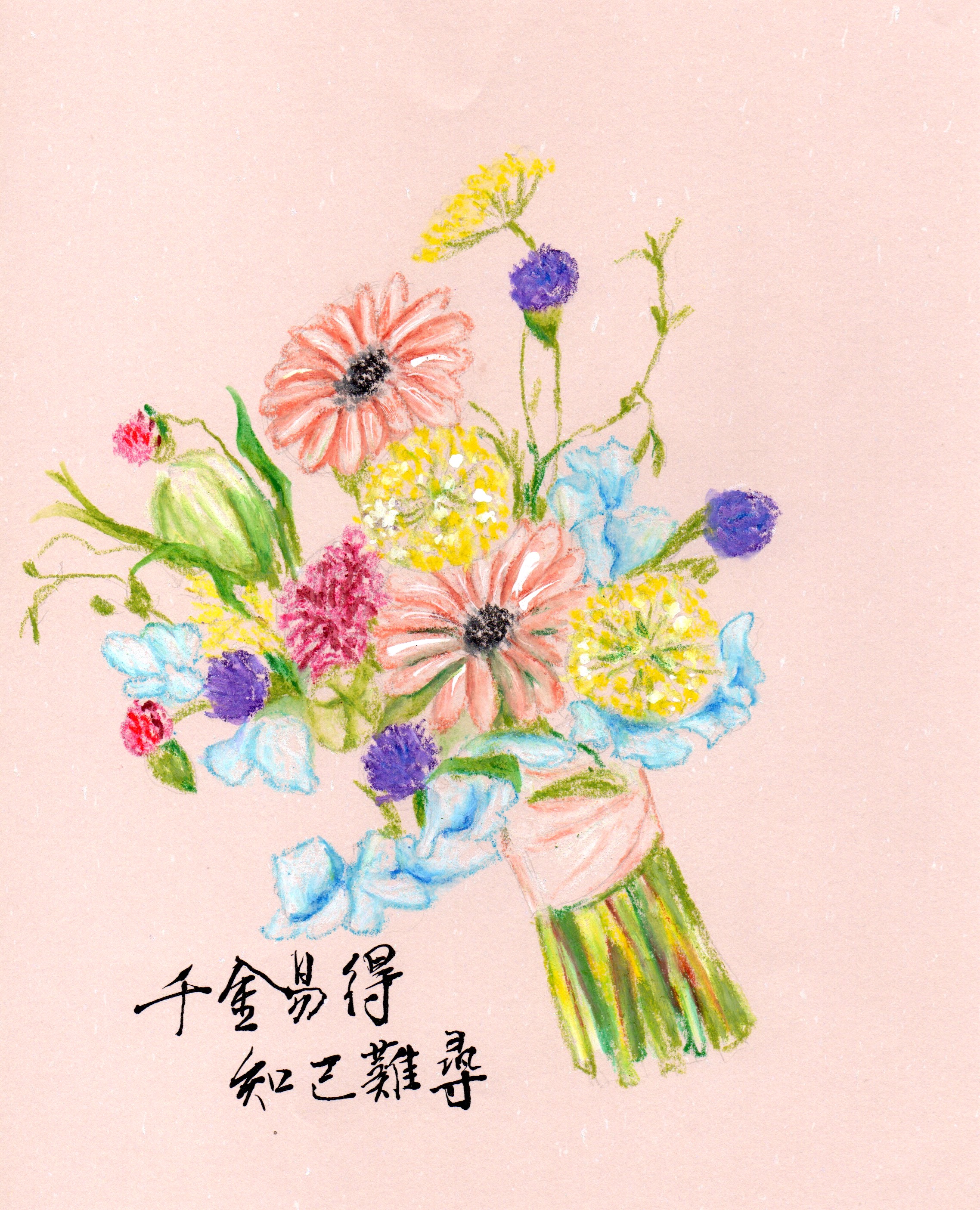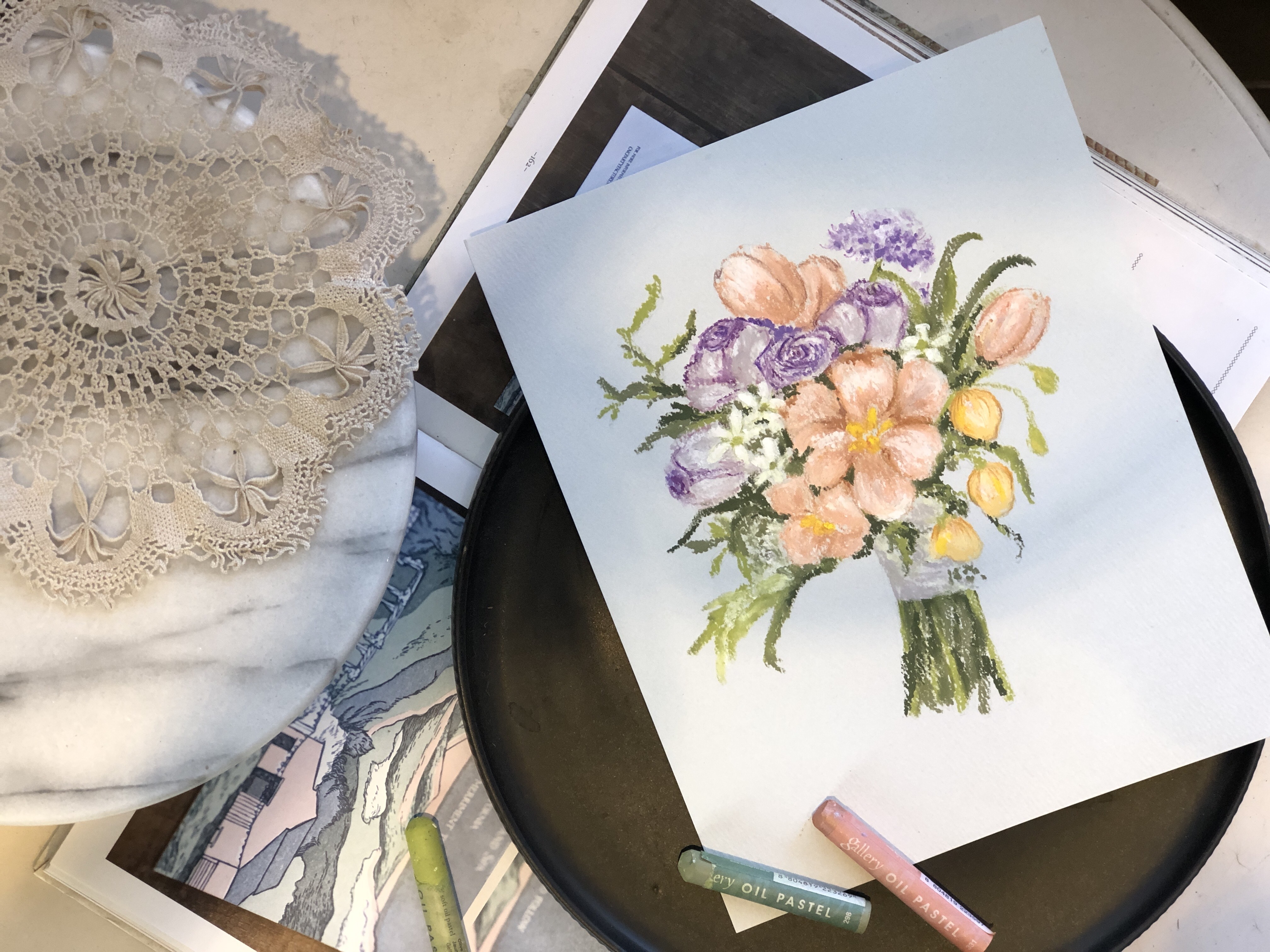課程將帶領你使用油粉彩來創作,一部部繪製出韓系的捧花油粉彩作品。