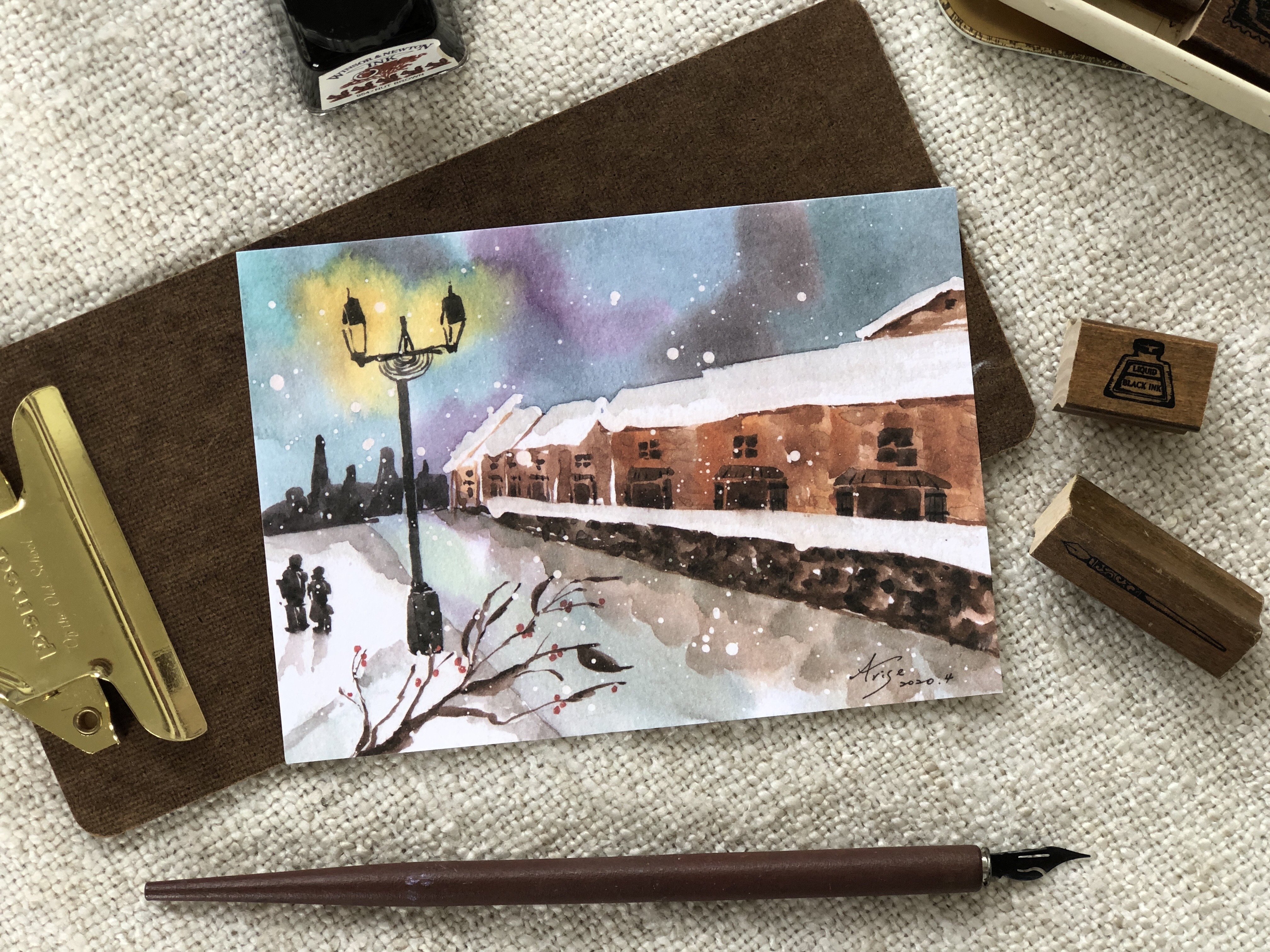 日劇《情書》中大量的取景於北海道小樽我在2019年底很幸運地走一趟《情書》的場景,印象最深的莫過於小樽運河。下著雪的小樽運河,漫步河邊的夜裡,是一輩子份量的幸福。透過畫筆,也想將這份幸福延續下去...以下是明信片資料,請參考:
