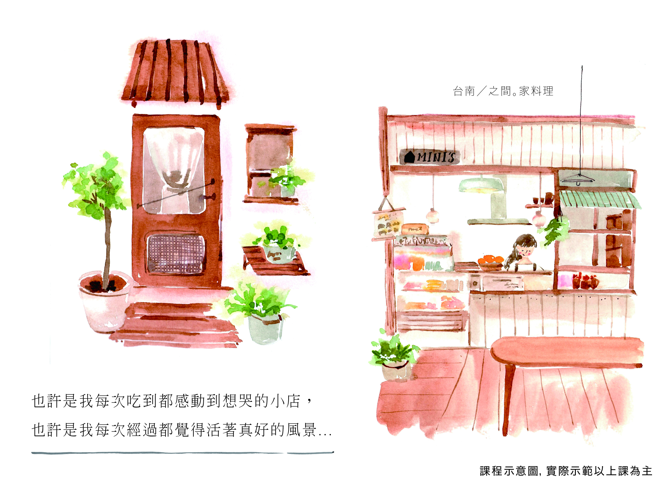 10堂美好的生活水彩探索課,我們將在可愛的咖啡廳、公園、河邊等地展開