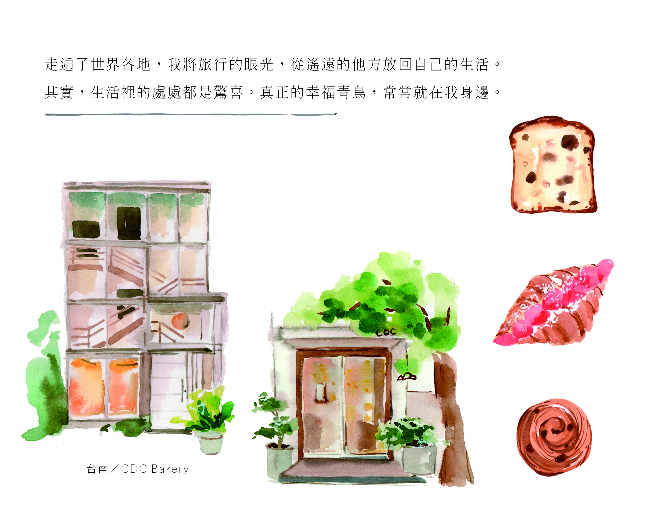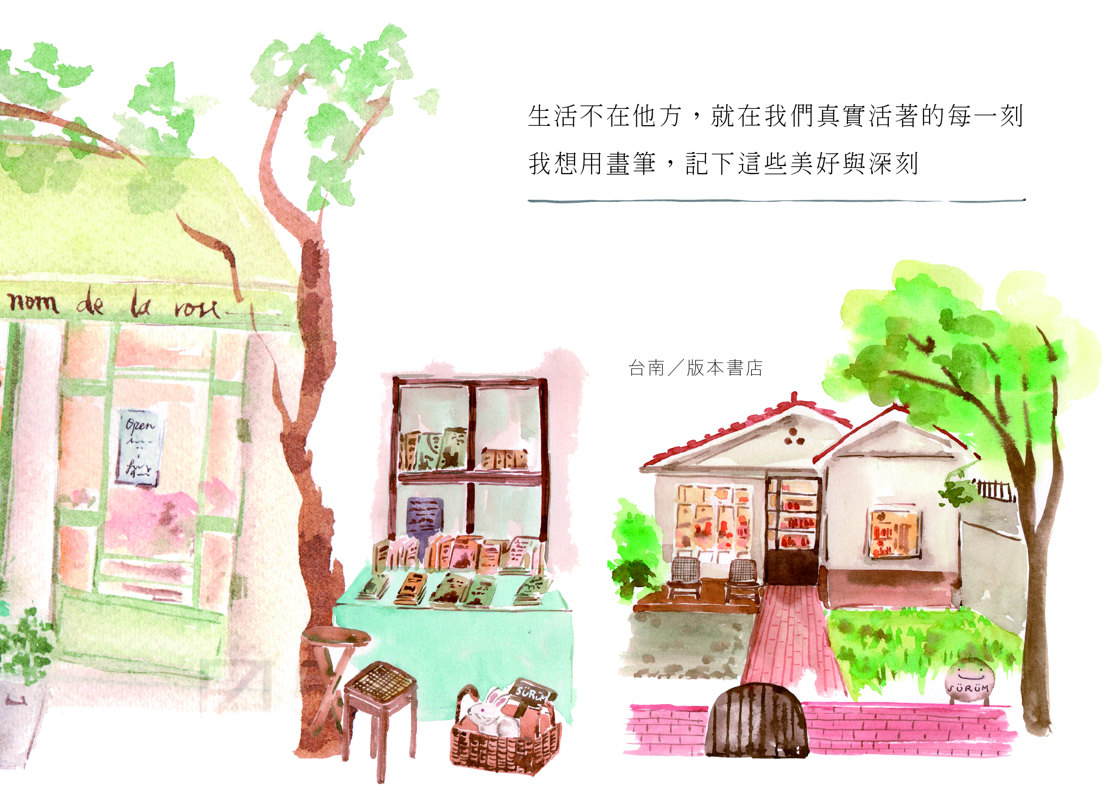 從街邊小店、轉角風景等,用更寫意的方式來畫出生活中的美好氣氛