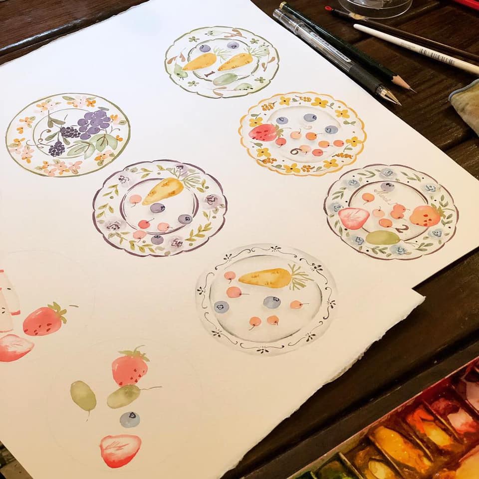 先把雙手放鬆,試著用水彩畫出一顆顆果果、蔬菜,在設計屬於自己的小瓷盤,是水彩新手的好入門,而已經熟悉水彩的你,也期待一起激發出更多的設計創意:)