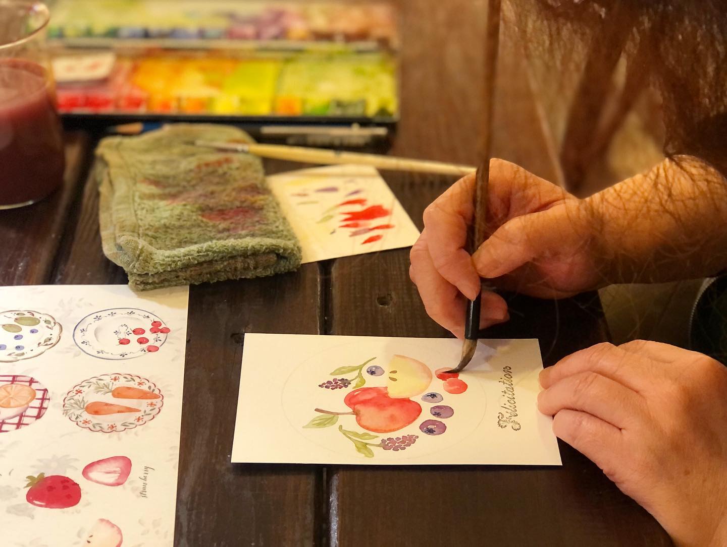 課程將示範各式小圖案的畫法,從中帶入水彩基本的渲染、平塗、留白等技法。
