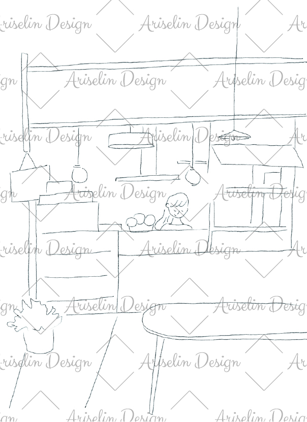 ✔練習比例與構圖:從大場景中取出一個視角,如門口、櫃台、窗邊