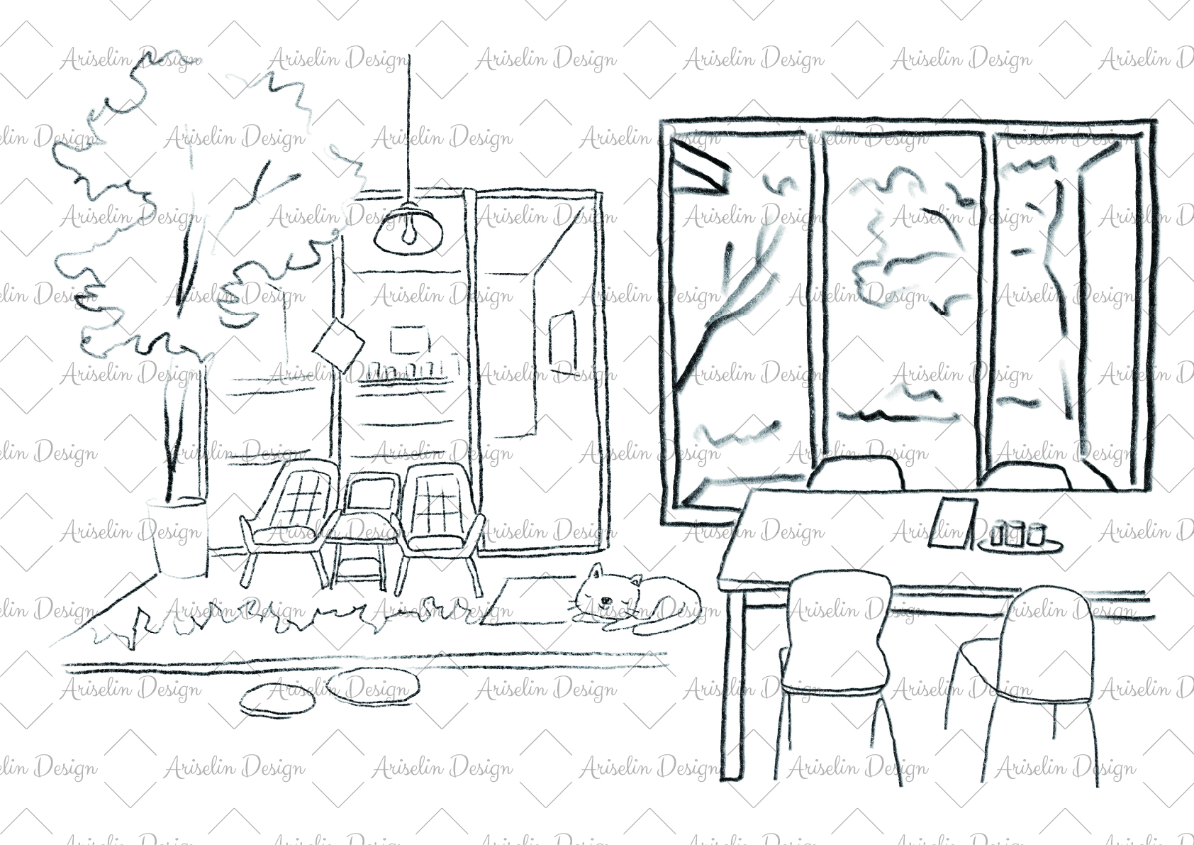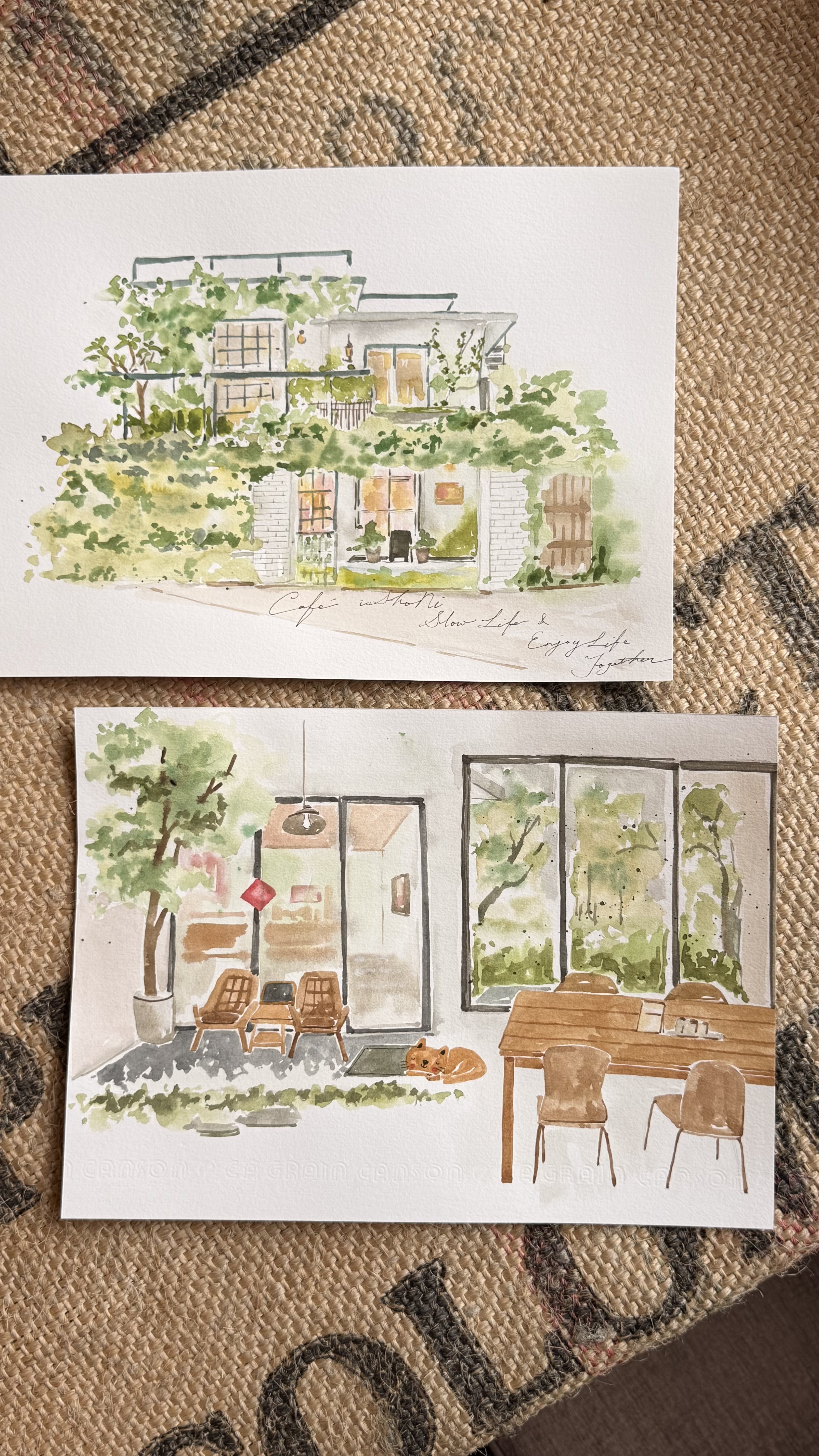 氛圍營造:透過色彩搭配與暈染,營造出溫暖、放鬆的咖啡館氣氛。