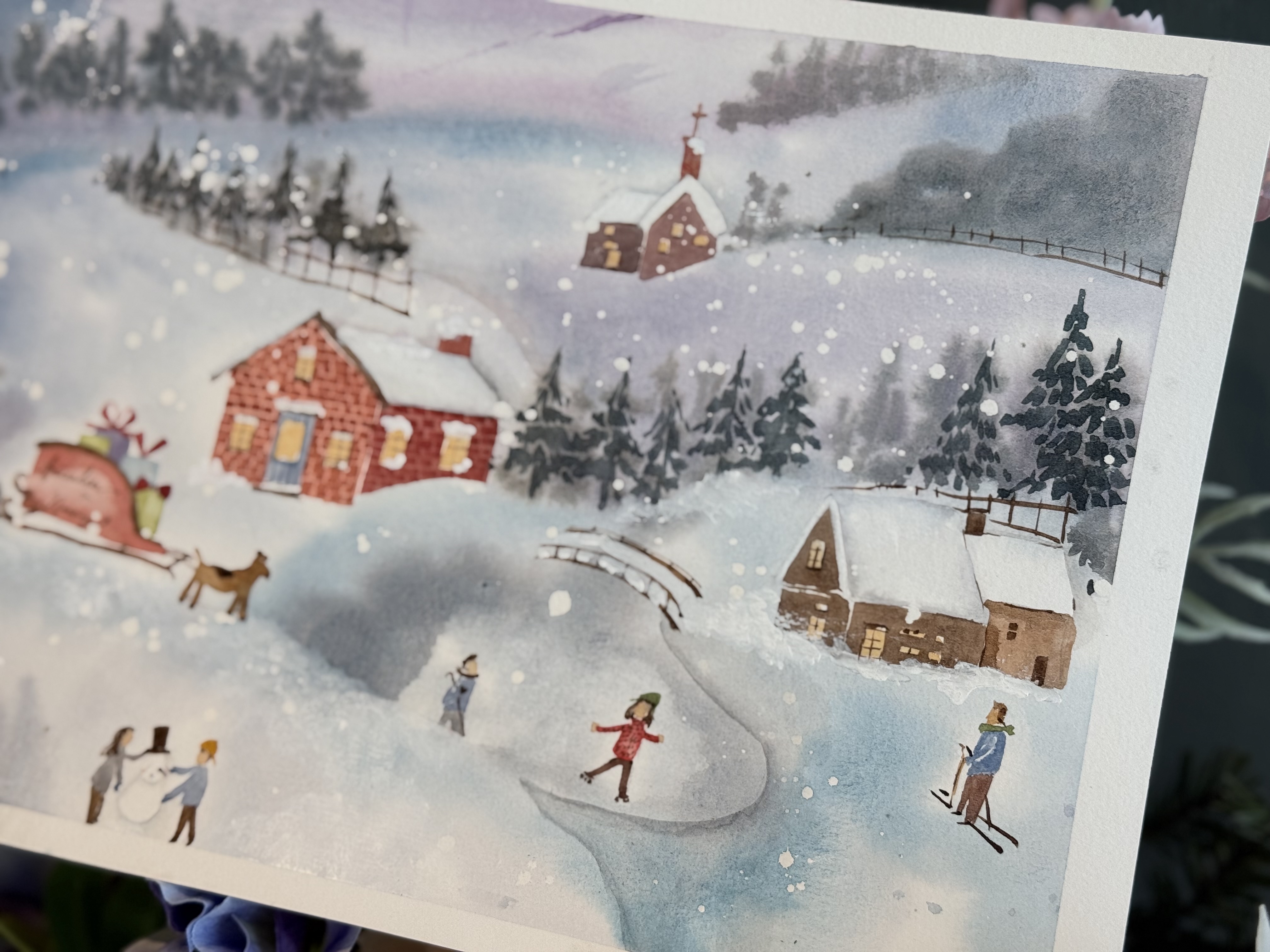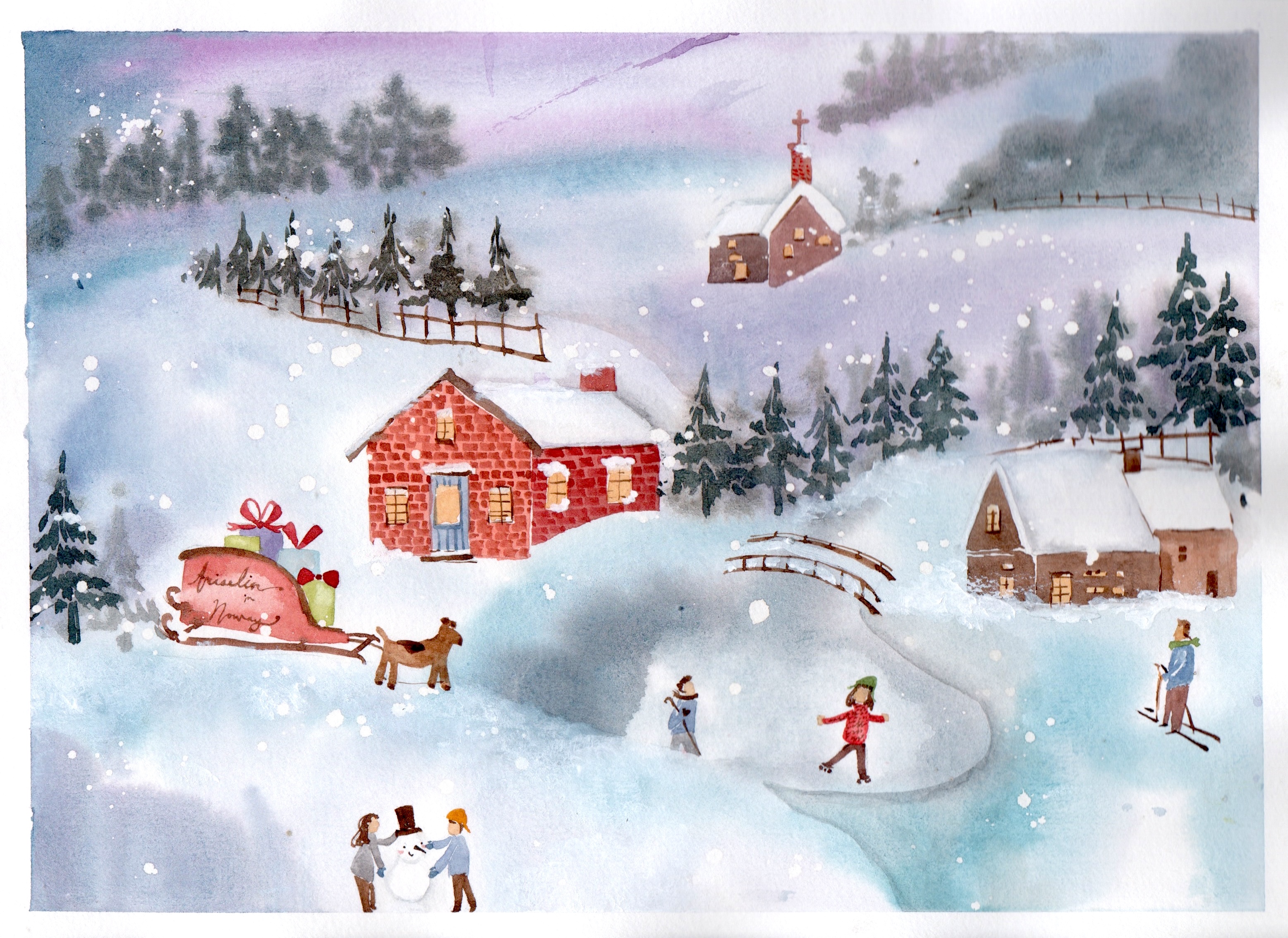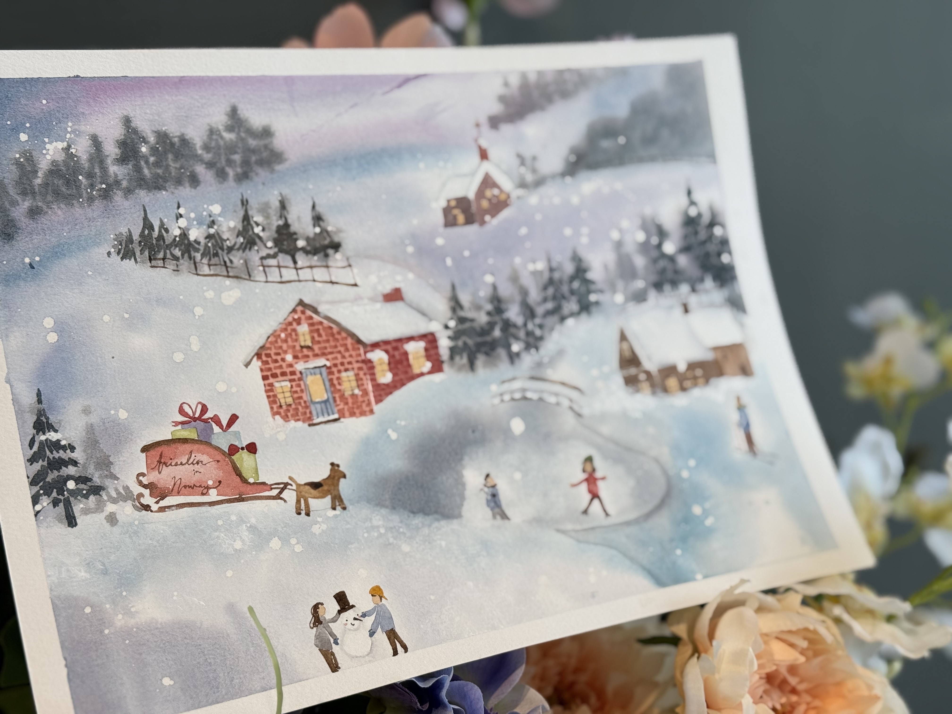 「挪威滑雪趣」水彩課,將帶你學習如何透過水彩的 透明感與層次疊加技巧,營造雪景的柔和氛圍。