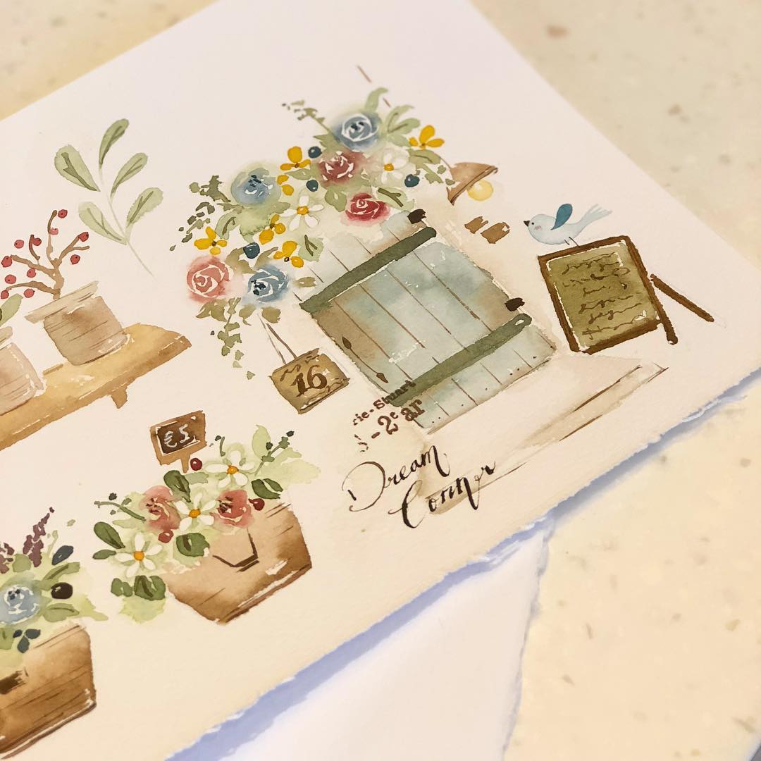 水彩的輕柔筆觸,像是微風輕拂,將自然與人文的細膩感受融合其中。